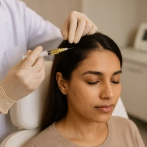 The prepared platelet-rich plasma is injected into specific scalp areas affected by thinning or reduced hair density. A trained dermatologist performs the procedure under sterile conditions to ensure safety and precision.